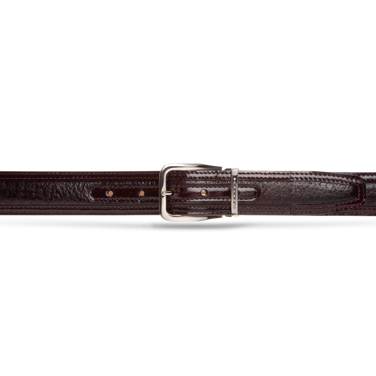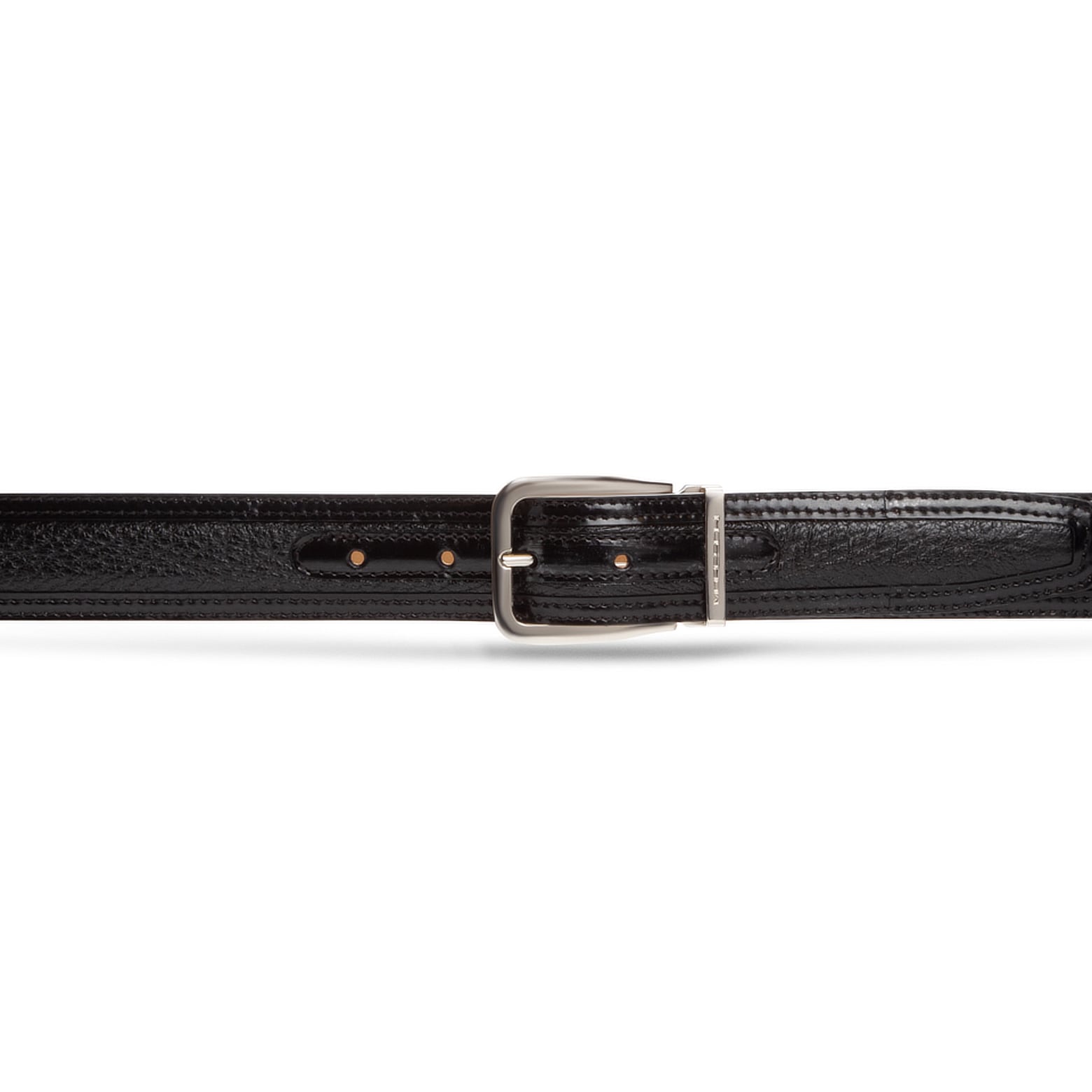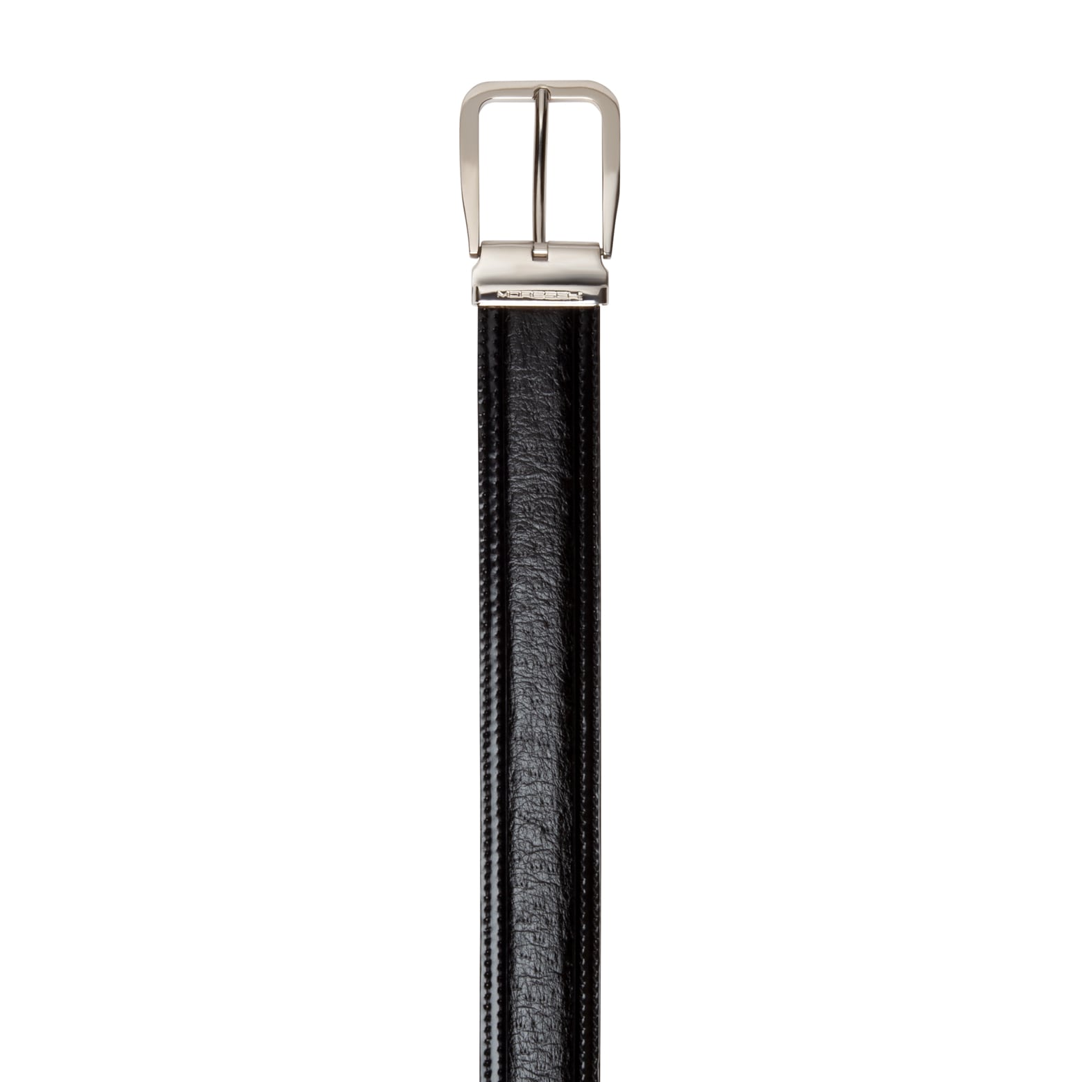 Cintura cucita da uomo di alta qualità, alta 35 mm, realizzata in autentico pecari con raffinati profili in vitello spazzolato. Proposta in colore nero, combina materiali esclusivi per un risultato elegante e distintivo. Perfetta da abbinare ai modelli iconici del marchio come Caen, Arles o Rennes, è completata da una fibbia stondata in finitura argentata lucida con passante metallico personalizzato Moreschi, dettaglio che ne esalta l’eleganza senza tempo.