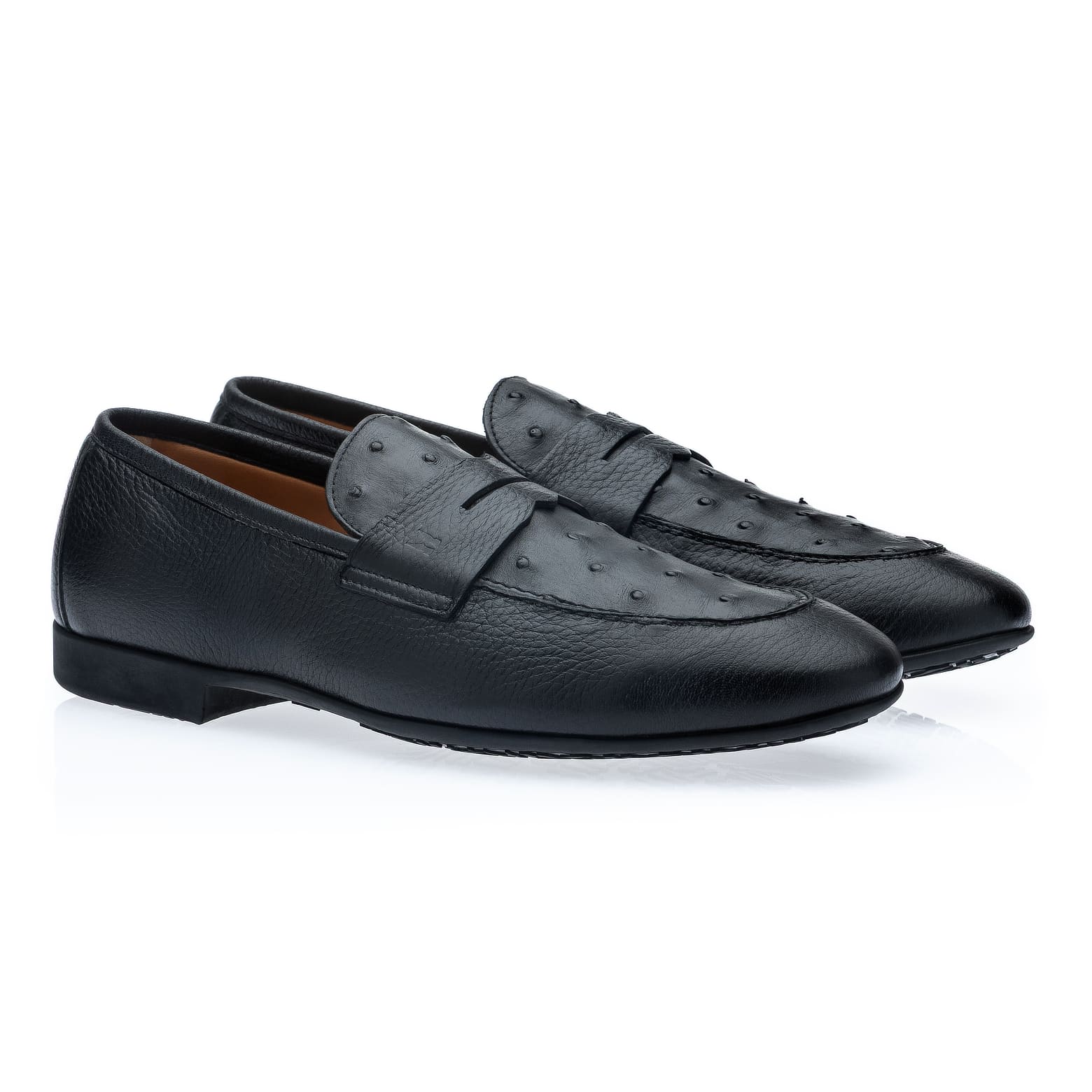 Palestro è l’evoluzione più esclusiva dell’iconico modello Baku, reinterpretato in chiave raffinata all’interno della collezione continuativa Heritage di Moreschi. Realizzata in una combinazione di materiali pregiati, la versione Ostrich unisce una tomaia in morbida pelle di cervo nera a una vaschetta in autentico struzzo, dando vita a un contrasto materico elegante e sofisticato, ideale per l’uomo che desidera distinguersi attraverso i dettagli.