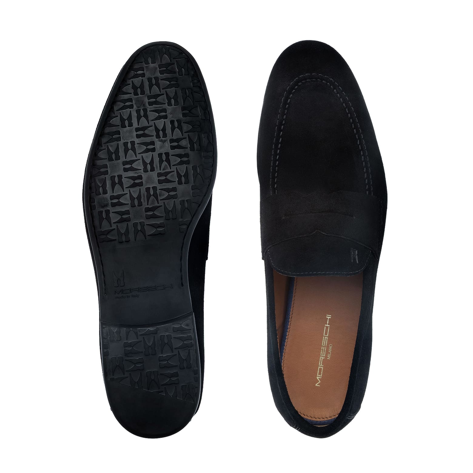 La fodera interna in vitello assicura una calzata avvolgente e traspirante, mentre la suola in gomma, leggera e stabile, garantisce massima praticità in ogni condizione d’uso, anche durante le giornate più dinamiche. La costruzione Blake, cifra distintiva dell’artigianalità Moreschi, conferisce alla calzatura resistenza, flessibilità e una finitura impeccabile, mantenendo l’anima raffinata del mocassino.