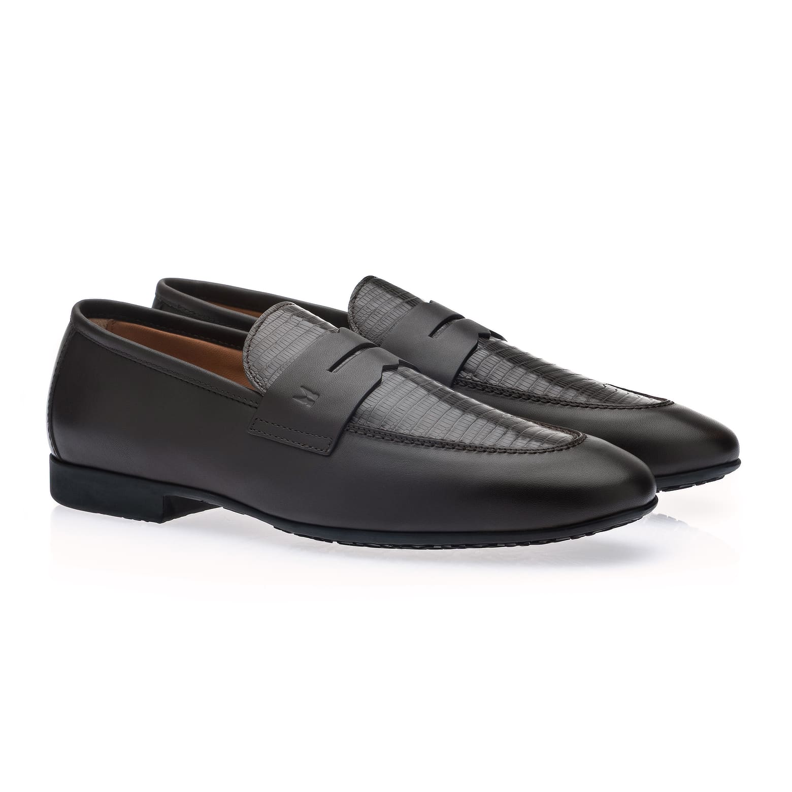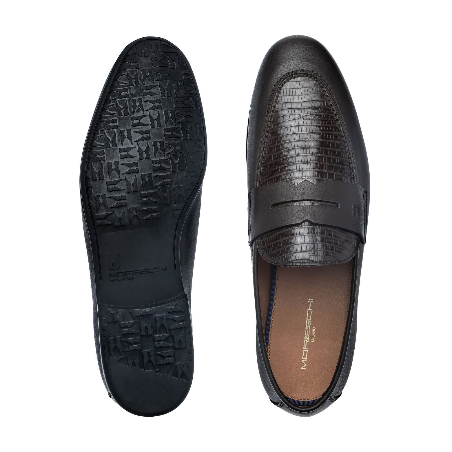 Palestro rappresenta l’evoluzione stilistica dell’iconico modello Baku, appartenente alla collezione continuativa Heritage. È un mocassino da uomo in materiali pregiati che abbina una tomaia in morbido vitello nappato a una vaschetta in lussuoso tejus, creando un raffinato contrasto di texture e profondità.