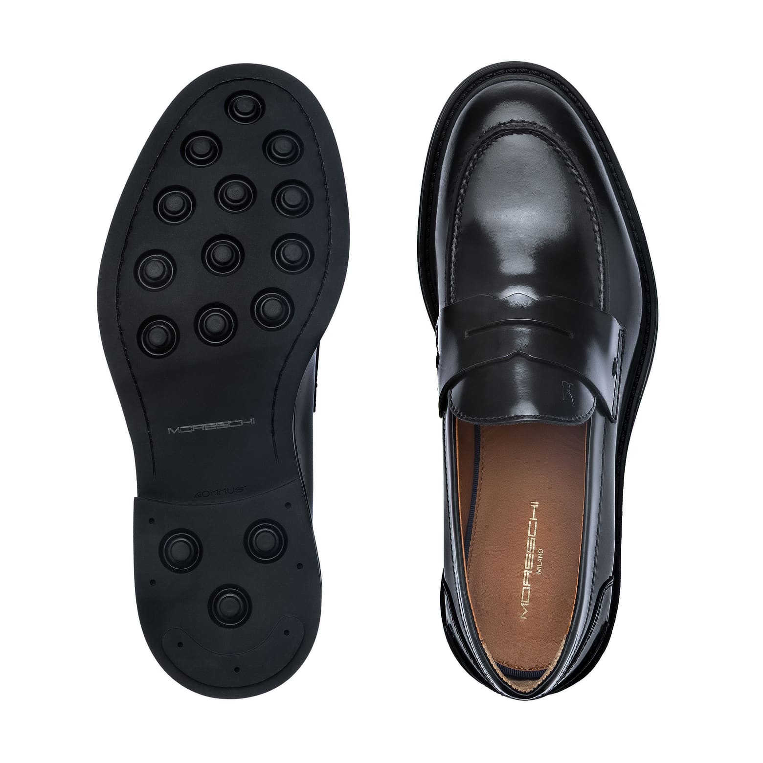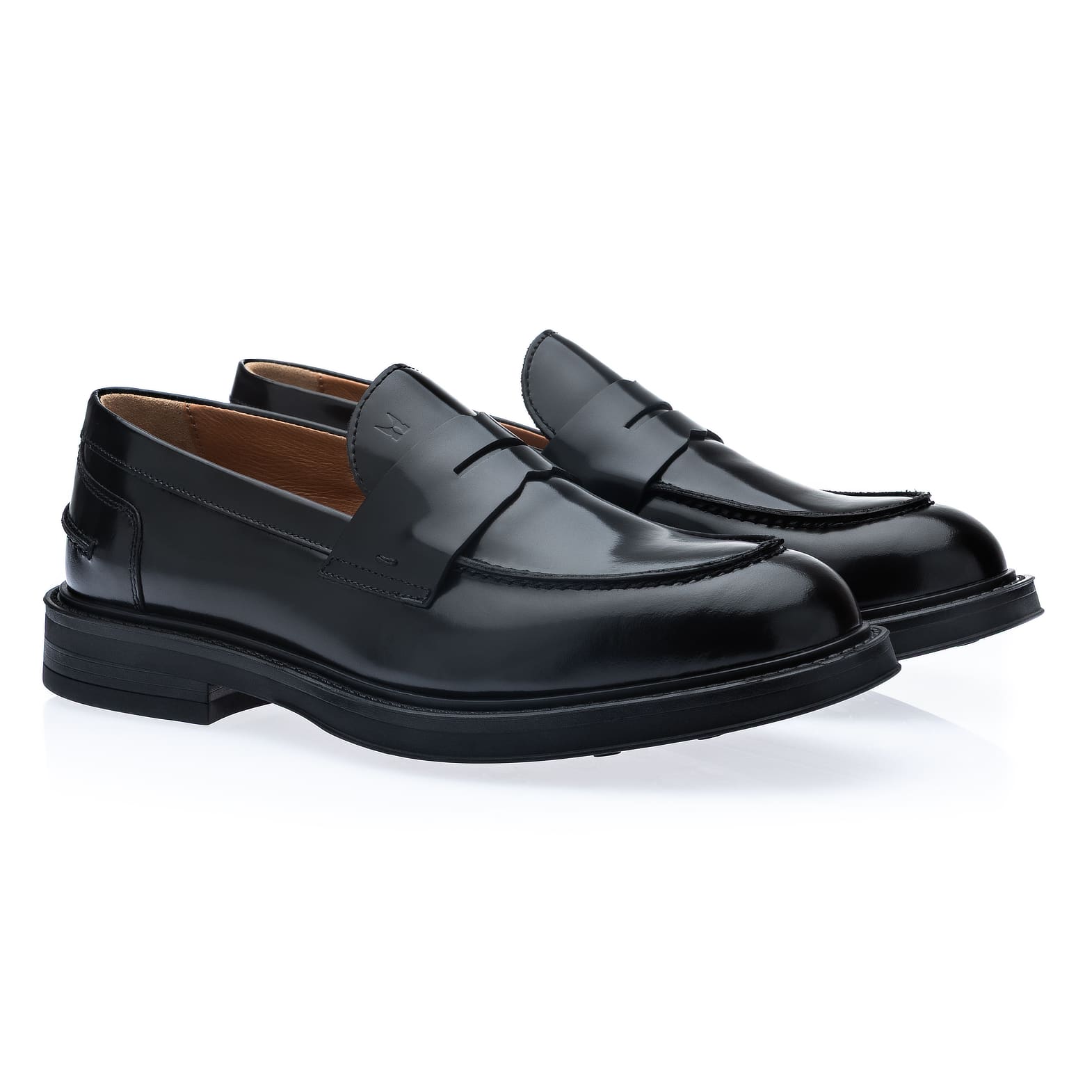 Sempione è un mocassino da uomo realizzato in vitello spazzolato nero, pensato per coniugare eleganza e funzionalità in ogni contesto urbano. Il design si distingue per una linea moderna e decisa, valorizzata da una suola in gomma tono su tono con battistrada nero, che garantisce aderenza e protezione ottimale anche nelle stagioni più umide e piovose.